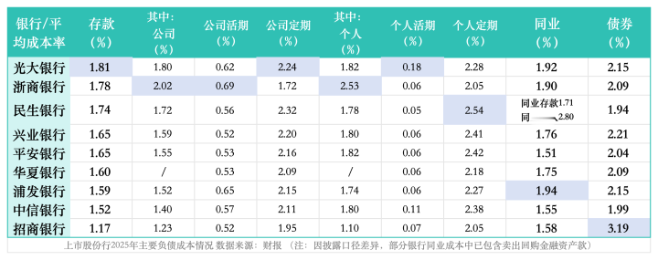 不过,一般存款成本低于同业及发债成本仍是常态,关键要看高成本定期存款和低成本活期存款的比重。