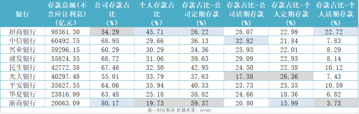活期存款、定期存款占比差异大